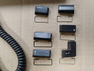 Some of the "long" keys have metal supports: two black ones for the Shift keys, a shorter one for the Control key, and the remaining have the same size for the Enter, Return, and (numpad) Zero keys. |