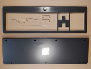The keyboard without its top cover. There's a rubber gasket between the top and bottom covers. |