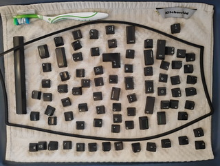 The keycaps and the rubber gasket after cleaning. |